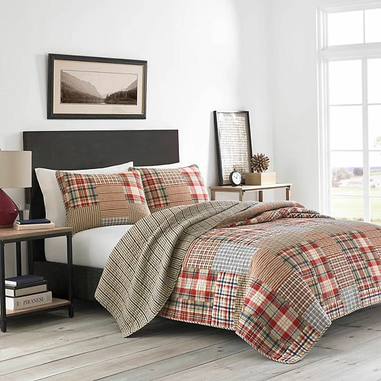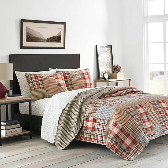 Create a look you’ll love coming home to with this Eddie Bauer Hawthorne quilt set. In brown.