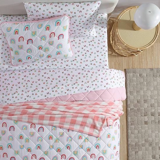 Bring a fun, adventurous look to your kid’s bed with this Eddie Bauer Kids Sunnyvale Rainbow Quilt Set with Shams.