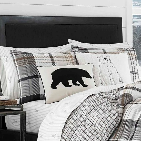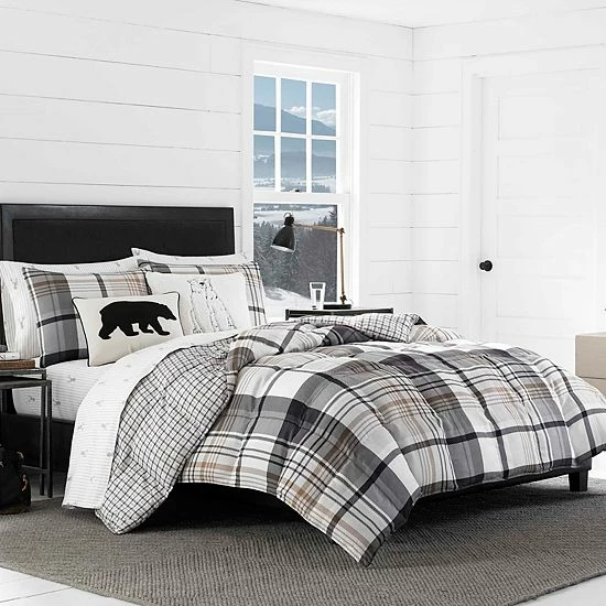 This Eddie Bauer Normandy Plaid comforter set puts a contemporary twist on classic plaid. In black.