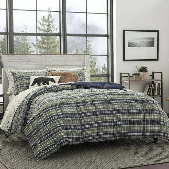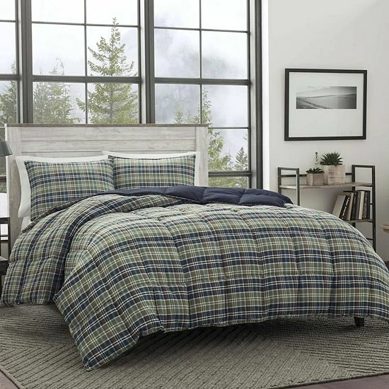 This reversible Eddie Bauer comforter set is a classic way to complete any bedroom in your home. In navy.