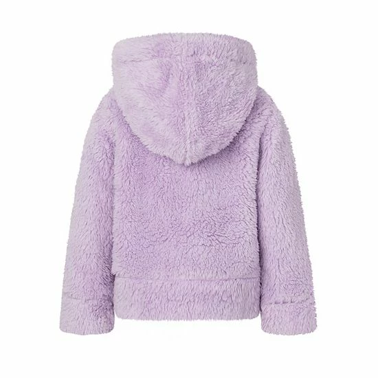 She’ll stay cozy and look cute in this toddler girls’ hooded sherpa jacket from Eddie Bauer.