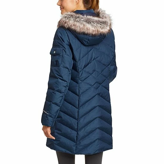 Stay cozy, no matter the weather in this women’s down puffer coat from Eddie Bauer.